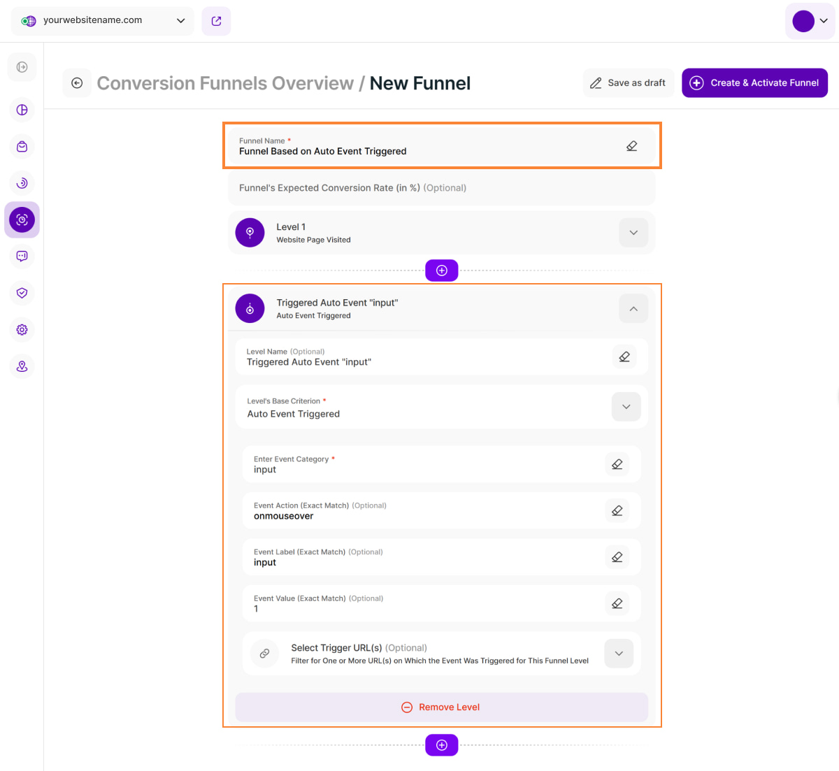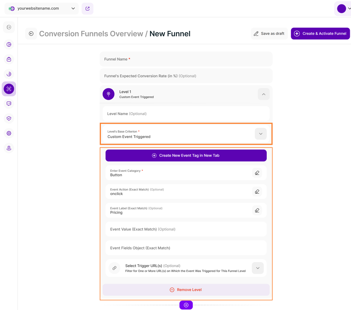 - Level Name (Optional): Enter a descriptive name to easily identify this step in your funnel.