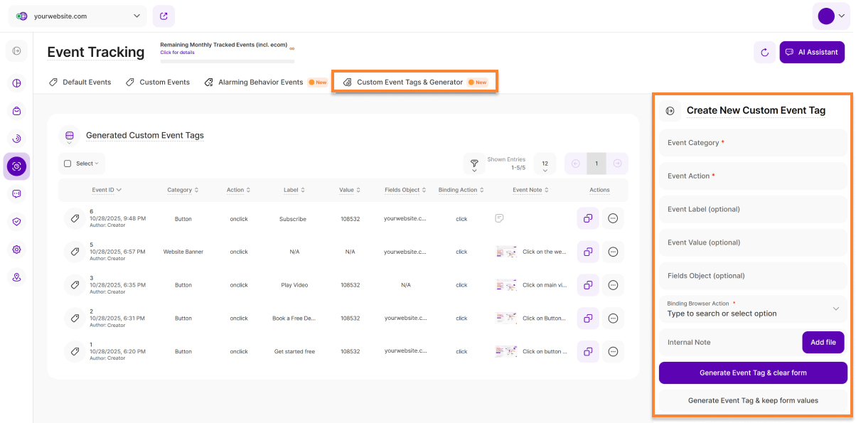 Once you generate your new event tag, integrate it into your website by adding it to each element you want to track (depending on your website builder platform). You can add the tag our app provides, either directly within the element's code or as a separate script, as shown in the tutorial below.