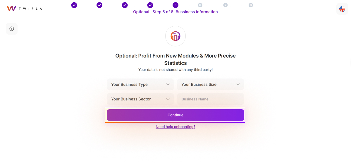 Stuck on onboarding? Just click the Need help onboarding? link at the bottom of the onboarding steps to chat with our Support Team.